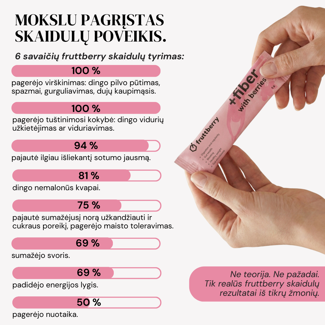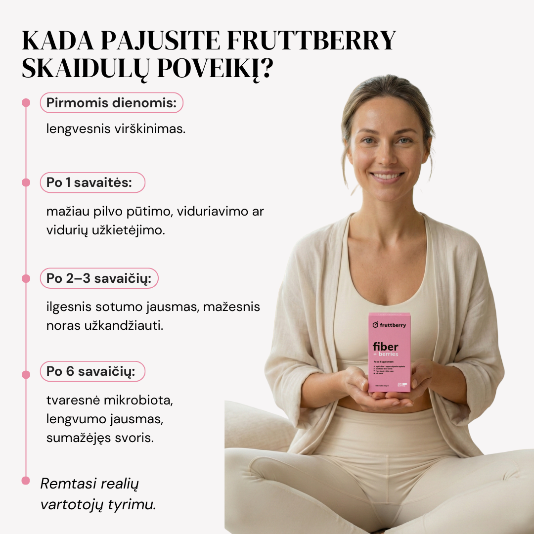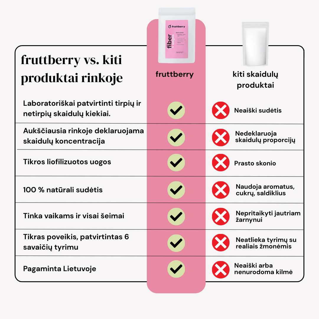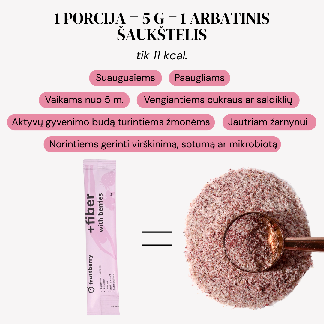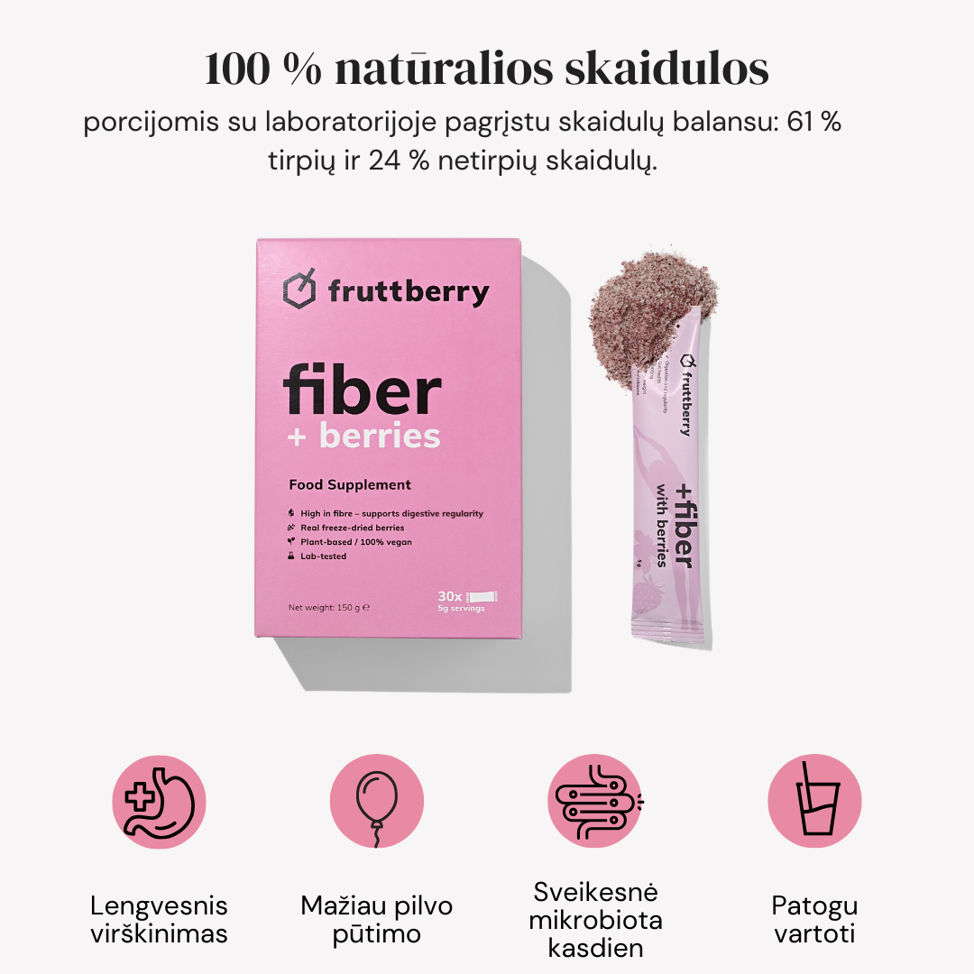 The mixture contains such natural ingredients as plantain, agave inulin, glucomannan contained in the root extract of leopard amorpholas and more than 40 different fruits, berries, vegetables, adaptogens, antioxidants and other ingredients found naturally in nature. The mixture is made in Lithuania, taking into account the recommendations of nutritionists.